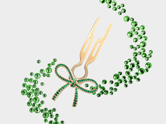 Nº1 HAIRPIN Ribbon | Emerald Green Swarovski® Crystals | Yellow Gold Finish