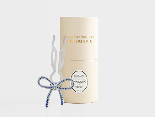 Nº1 HAIRPIN Ribbon | Sapphire Blue Swarovski® Crystals | White Gold Finish