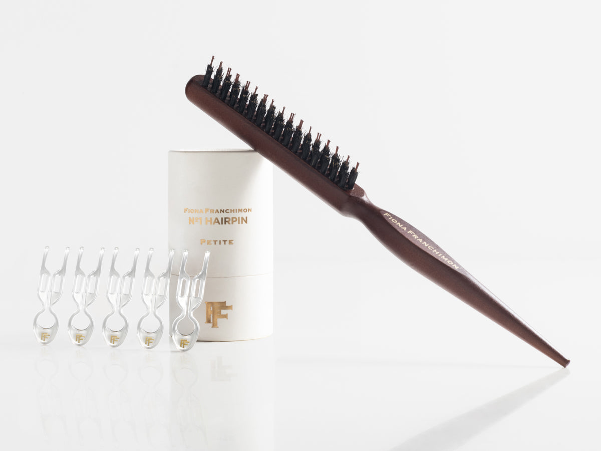 Die Fiona Franchimon Backcomb Brush mit Wildschweinborsten eignet sich perfekt zum Toupieren und Stylen. Sie sorgt für mehr Volumen und Textur. Zudem bieten die Borsten einen hervorragenden Halt für das Setzen der Nº1 HAIRPINS.
