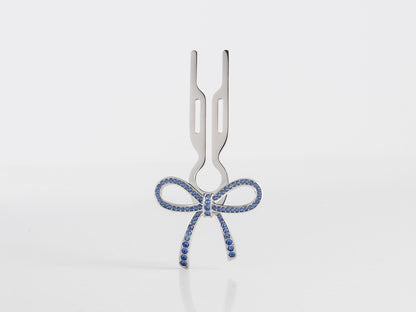 Nº1 HAIRPIN Ribbon | Sapphire Blue Swarovski® Crystals | White Gold Finish