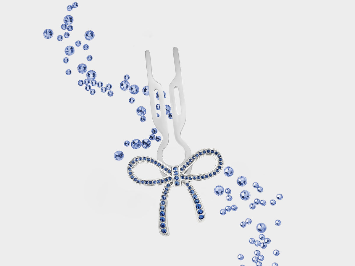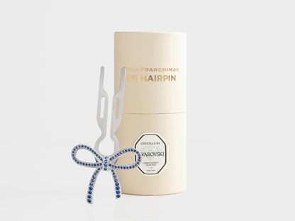 Meet the Nº1 Hairpin Ribbon with Sapphire Blue Swarovski® Crystals. Featuring 2 mm Swarovski® Crystals and available in elegant White Gold finish. Designed to secure any hairstyle in seconds, this limited edition adds a sparkling twist to your everyday routine or special occasion.