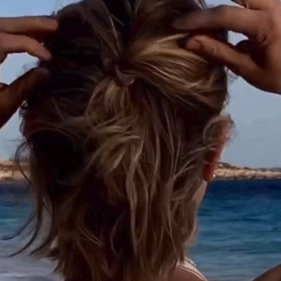 A: Firstly part your hair the way you usually do, then grab a section of your hair and loosely twist the sections. Hold the twisted sections between your thumb and forefinger and use your fingers on the other hand to loosely spread the Nº1 Hairpin sideways. Carefully slide in in the Nº1 Hairpin upwards, along your scalp and slide the in Nº1 Hairpin in the opposite direction of your parting to secure a firm grip.