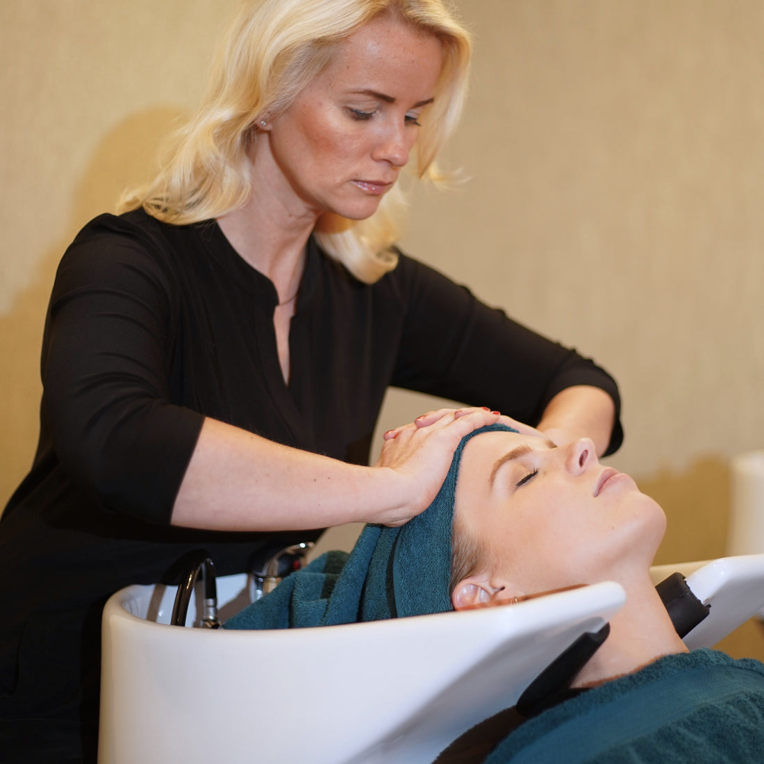 The Hair Spatique is a treatment that consists of pure massage techniques of the scalp, neck, shoulders, hands and facial pressure points. A sincere moment for yourself. The scalp massage is central, this promotes blood circulation in the scalp, which ensures that your body comes into balance. The relaxing retreat lasts 30 minutes and includes 15 minutes of hairstyling as after care.