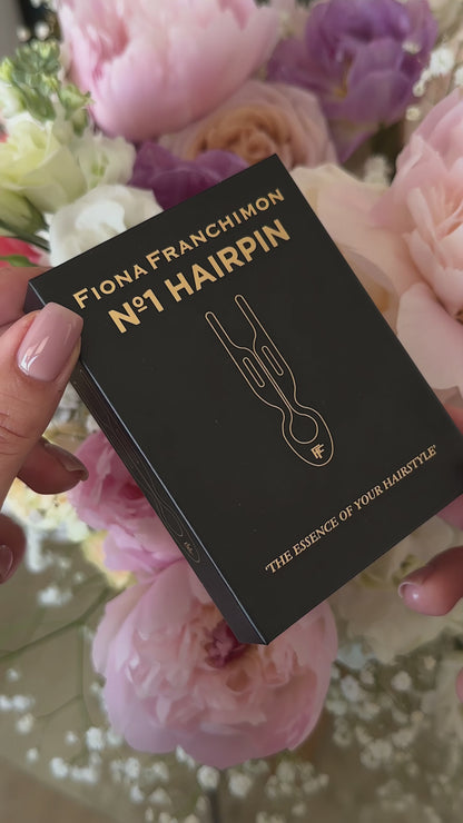A: Firstly part your hair the way you usually do, then grab a section of your hair and loosely twist the sections. Hold the twisted sections between your thumb and forefinger and use your fingers on the other hand to loosely spread the Nº1 Hairpin sideways. Carefully slide in in the Nº1 Hairpin upwards, along your scalp and slide the in Nº1 Hairpin in the opposite direction of your parting to secure a firm grip.