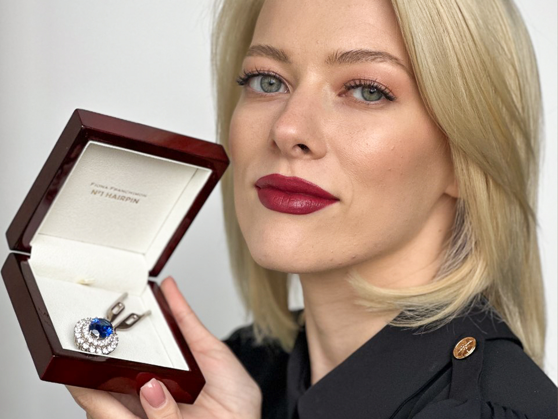 Geïnspireerd door The Crown presenteren wij u onze Nº1 HAIRPIN Royal Collection. Met een prachtige 10 krt saffiersteen omringd door 5,4 karaat diamanten. Dit is de witgouden editie.