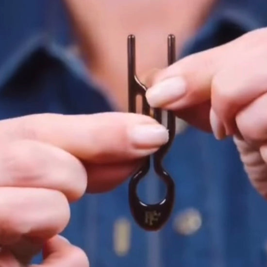 De gebogen vorm, het betrouwbare slot, de flexibiliteit en het hygiënische materiaal maken de № 1 HAIRPIN tot een uniek haarinstrument. De grip is minstens 5 keer sterker dan een gemiddelde haarspeld. Door de gebogen vorm zit de pin comfortabel in je haar en blijft daar de hele dag zitten zonder dat je het voelt. De pin is gemakkelijk in gebruik, beschadigt je haar niet en laat geen knikken achter. En het beste: het houdt het volume de hele dag levend!