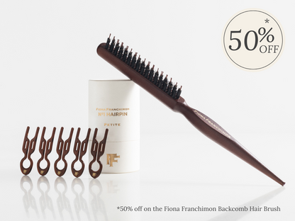 Included in this value set: the Nº1 HAIRPIN PETITE Brown and the Fiona Franchimon Backcomb Hair Brush.