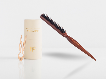 Included in this value set: the Nº1 HAIRPIN Steel Rose Gold and the Fiona Franchimon Backcomb Hair Brush.