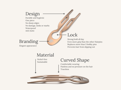 Uncover the beauty of Fiona Franchimon's Nº1 HAIRPIN Steel, gracefully finished in Rose Gold. This high-end Hairpin is crafted to elevate your hairstyle, drawing inspiration from the French Riviera. Now available in a Value Set, combined with the populair Fiona Franchimon Backcomb Brush.