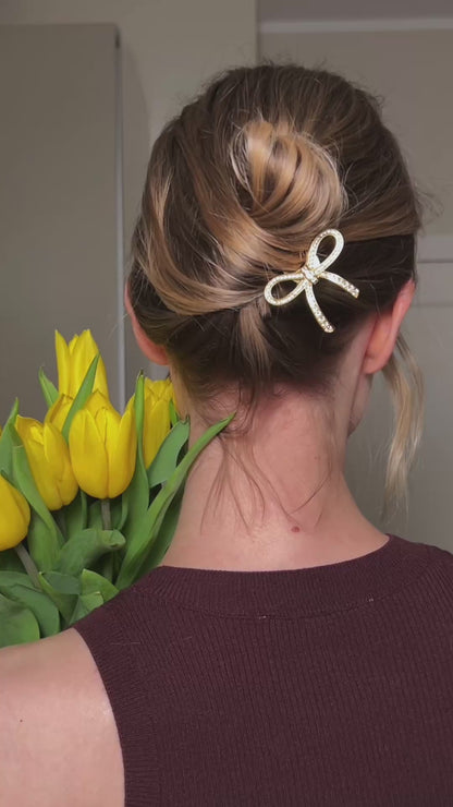 Meet the Nº1 Hairpin Ribbon, featuring 2 mm Swarovski® Crystals and available in elegant White Gold and Yellow Gold finishes. Designed to secure any hairstyle in seconds, this limited edition adds a sparkling twist to your everyday routine or special occasion.